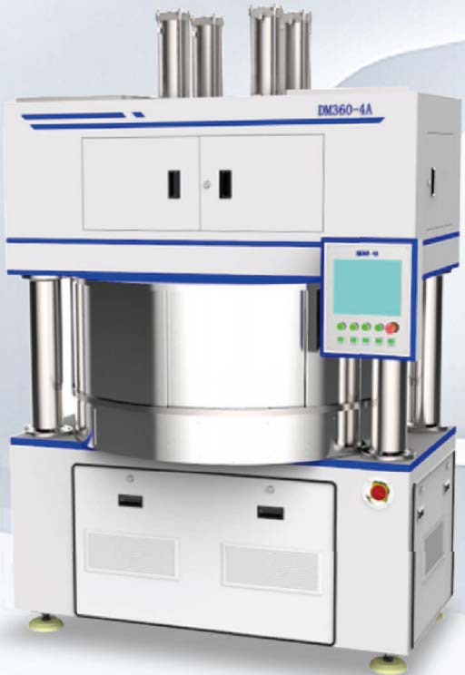 PP拋光頭位于設(shè)備的上部, P P頭的升降及加壓由氣缸實(shí)現(xiàn), 四個(gè)P P頭的升降及加壓均單獨(dú)控制; P P頭可主動(dòng)旋轉(zhuǎn), 單獨(dú)控制; PP頭具備真空吸附功能, 可將陶瓷盤快速提起;