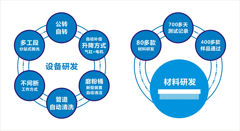 經(jīng)過80多款材料研發(fā)及700多天的測試,產(chǎn)品是現(xiàn)有普通材料下絲量的1.5倍,使用壽命增多3倍以上,最大化提升拋光效果,縮短拋光時間,減少人工成本的優(yōu)秀成果,成為全場新亮點。